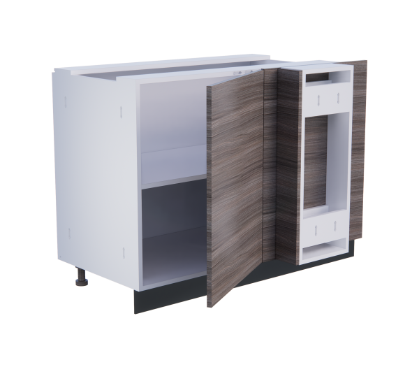 Kitchen base cabinet with 2 front for one door and one fixed front under sink